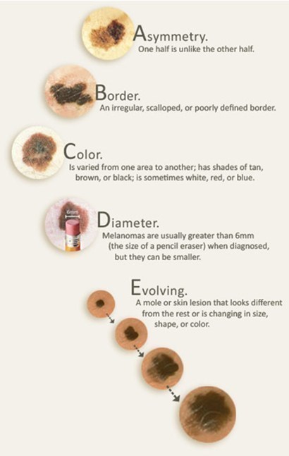 Dermatologists encourage people of all skin colors to perform skin self-exams. Checking your skin can help you find melanoma early when it’s highly treatable. When examining your skin for melanoma, you want to look for the warning signs, which are called the ABCDEs of melanoma :